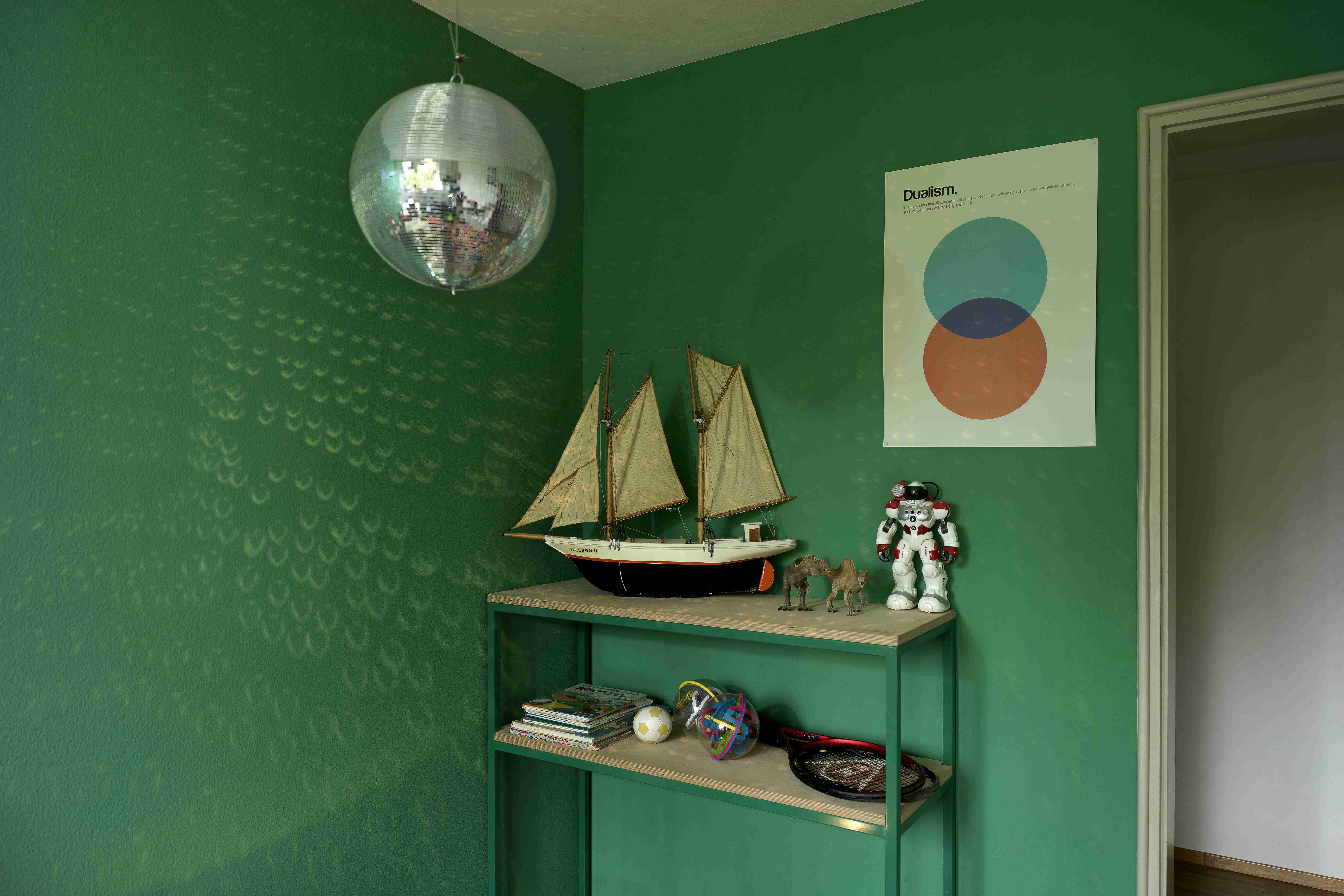 Die mit auserwählten Trouvaillen dekorierte Wohnung eines Modefotografen mit inspirierenden Farben akzentuieren.